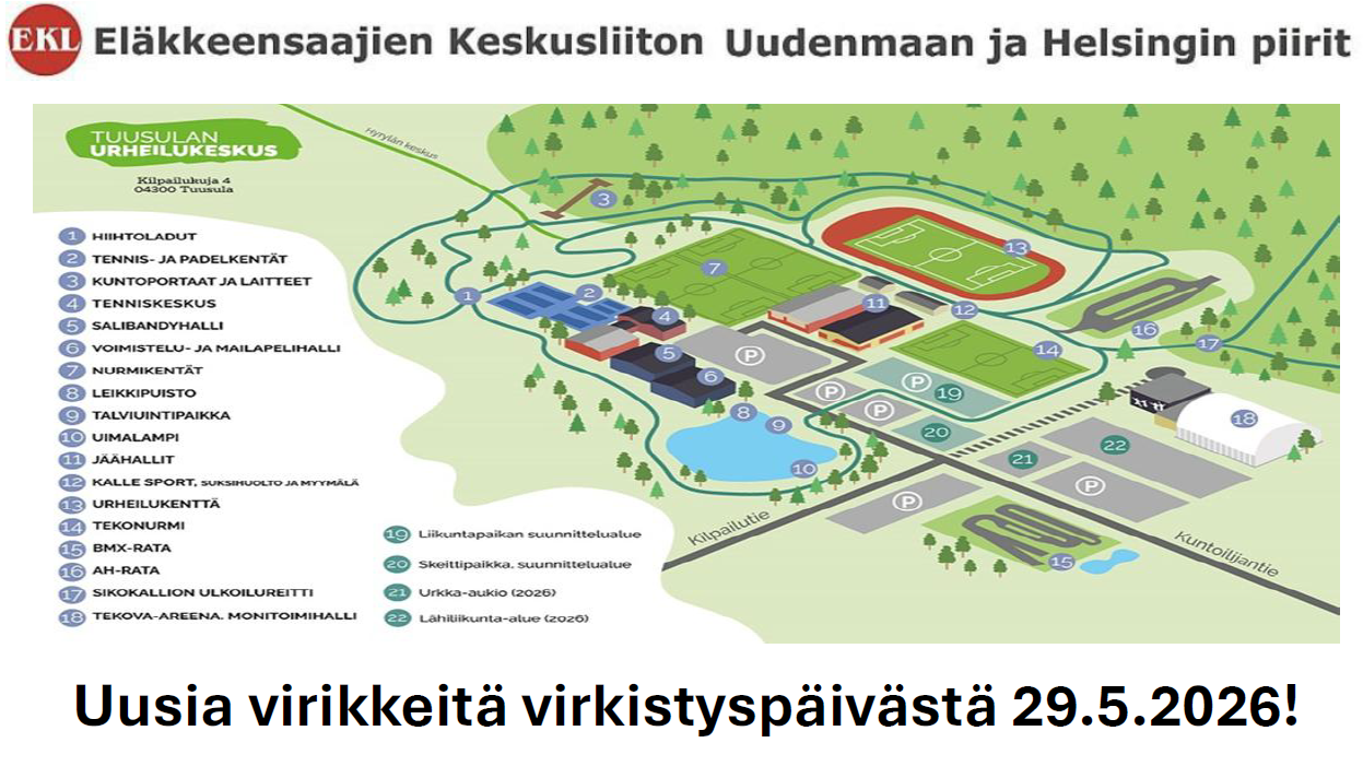29.5.2026 Virkistyspäivä - Tuusula. Helsingin ja Uudenmaan piirin järjestämänä Ilmoittautumiset edullisemmalla hinnalla 31.3.2026 mennessä. Linkki Helsingin piirin sivulle, missä lisäinfoa…
