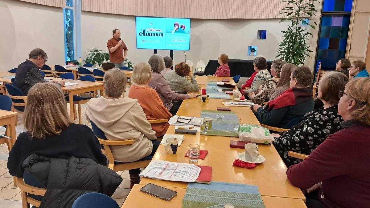 19.1.2026 aiheena Paas poiketen hanke, isot kiitokset Jussi Keränen, järjestösuunnittelija EKL. Tämä on todella tärkeä toimintamuoto, on vapaaehtoistoimintaa, joka tuo iloa ja seuraa ikääntyneille. Yksinäisyys ei ole hyvä seuralainen kaikille, se voi masentaa ja sairastuttaa. Otetaan haaste vastaan ja jatketaan toimintaa, joka käynnistettiin viime vuoden lopussa. Alussa meillä oli yhteislaulua Nostalgia kuoron johdolla, Lopussa keskustelua ja Jussi sai Tuulan kutomat sukat lahjaksi. Kiitokset keittiön väelle kaikesta, hyvät oli kahvit jälleen kerran.