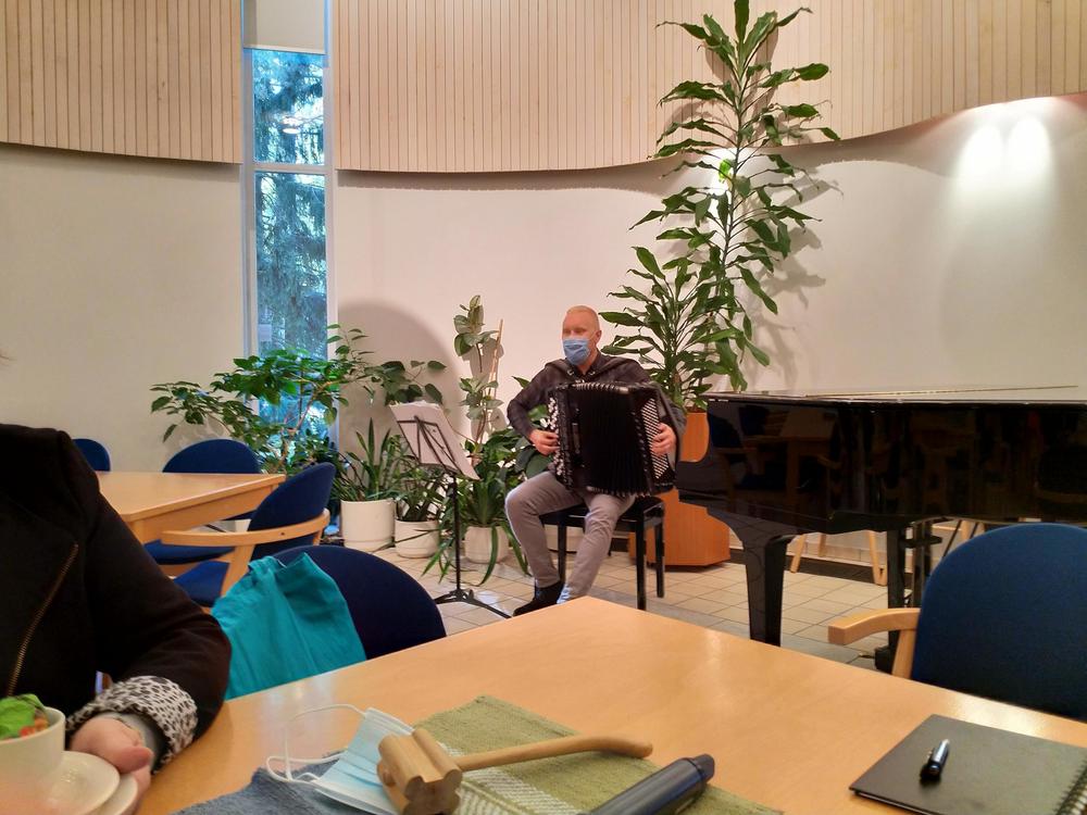 Voi miten ihana iltapäivä, ensin vanhan ja uuden hallituksen kokous, esittelimme itsemme ja puhuimme tulevasta ohjelmasta ja saimme palautetta menneestä. Sitten haitaristi Sami Majamäki soitti ja lauloimme mukana, olipa hieno konsertti. Lopuksi Metropolian Myllypuron Kampuksen opiskelijat haatattelivat meitä, millaisia liikunta- ja hyvinvointipalveluita kaipaamme. Meitä lähti vielä 15 Reitzin säätiön museoon, meillä oli hyvä opas ja pääsimme retkelle menneeseen, upeita tauluja mm näimme. Mikä ihaninta, tänään tuli uusi jäsen, nautti musiikista ja antoi hyvää palautetta Kampuksen opiskelijoille. Ensi maanantaina aiheena omaishoito.